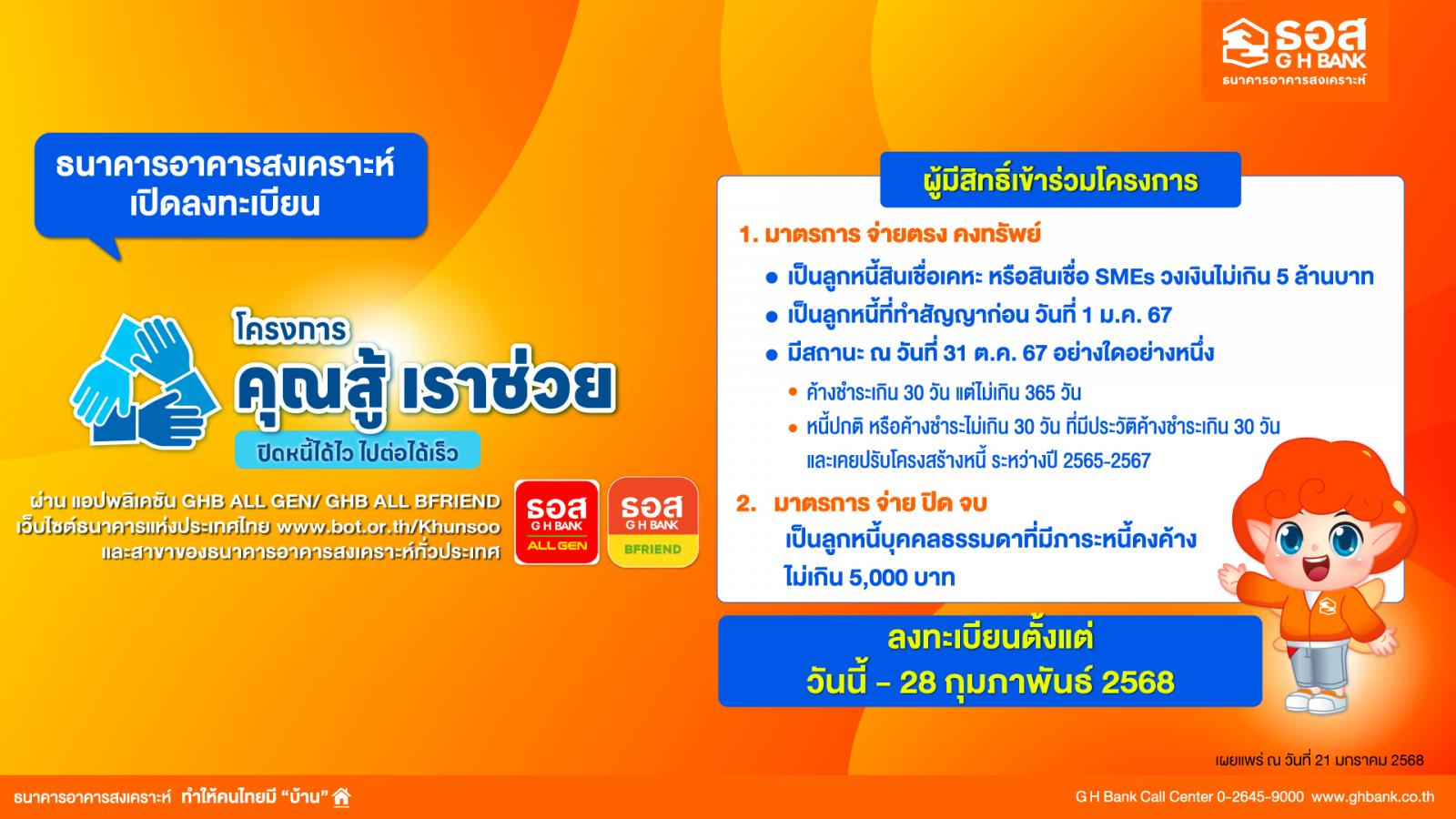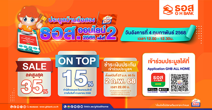สอบถามข้อมูลเพิ่มเติม ได้ที่ G H Bank Call Center โทร.0-2645-9000 กด 5 หรือ Facebook Fanpage ธนาคารอาคารสงเคราะห์ หรือดูข้อมูล บ้านมือสอง ธอส. ได้ที่ www.ghbhomecenter.com, Mobile Application : GHB ALL...