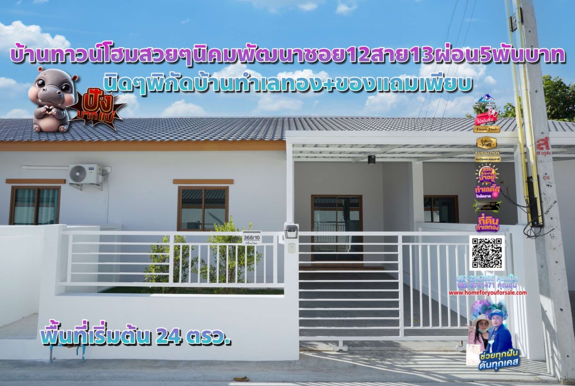 *ช่วยแก้ไขแบล๊คลิสปิดภาระหนี้ผ่อนบ้านทางเดียว* บ้านทาวน์โฮมสวยๆมูจิ มินิมอล นิคมพัฒนาซอย12ผ่อน5เริ่มพันบาทนิดๆพิกัดบ้านทำเลทอง+ของแถมเพียบ พื้นที่ 24-27 ตรว 2 นอน2น้ำ 1 ที่จอดรถพื้นที่ใช้สอย 73.50 ตรม. ทำเลตรงนี้สะดวกสบายทุกการเดินทาง ใกล้นิคมอมตะซิตี้โซนจีนเดินทางเพียง5นาที