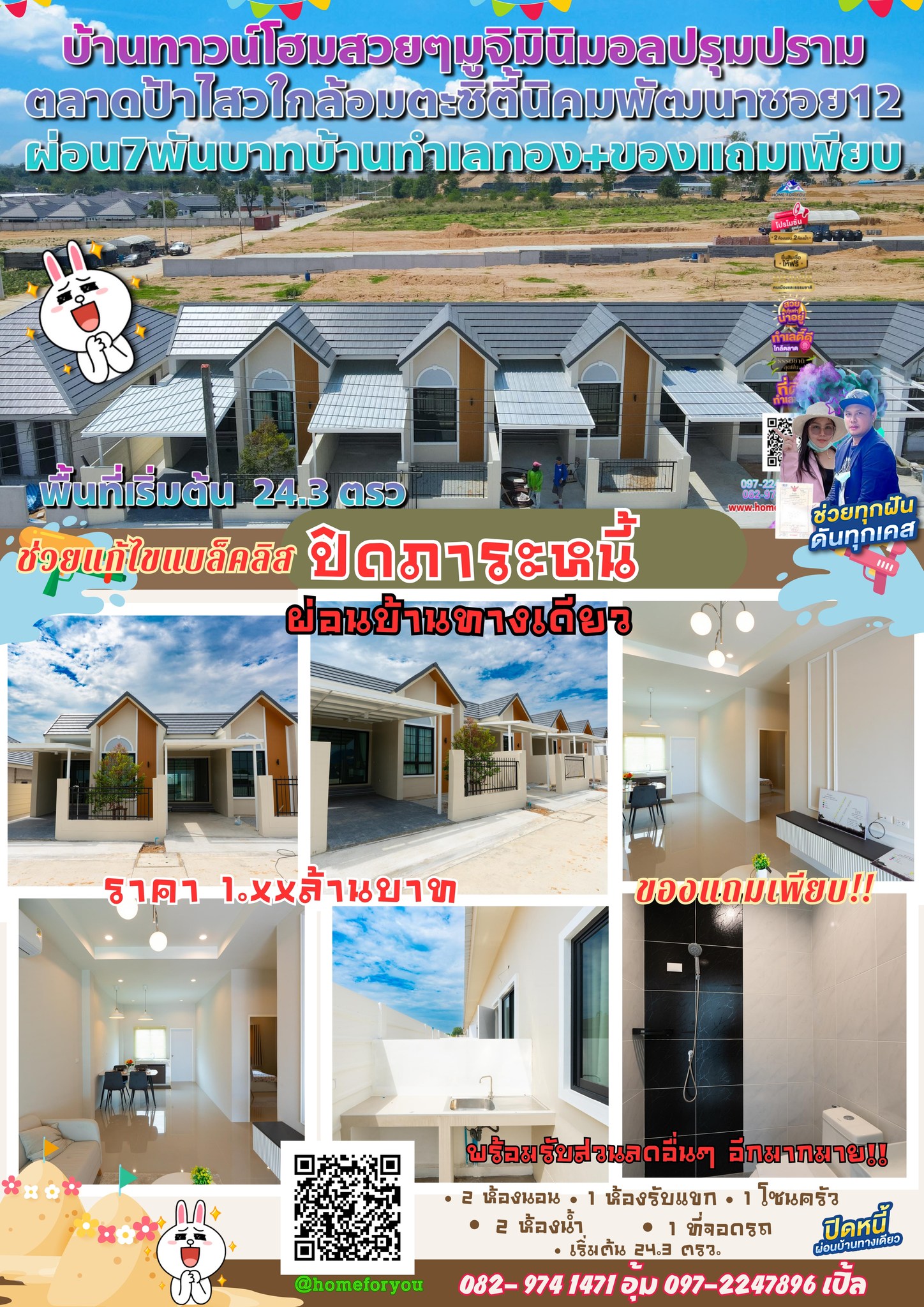 *ช่วยแก้ไขแบล๊คลิสปิดภาระหนี้ผ่อนบ้านทางเดียว* บ้านทาวน์โฮมสวยๆมูจิ มินิมอล ปรุมปรามตลาดไสว ใกล้อมตะซิตี้นิคมพัฒนาซอย12ผ่อน7พันบาทนิดๆพิกัดบ้านทำเลทอง+ของแถมเพียบ