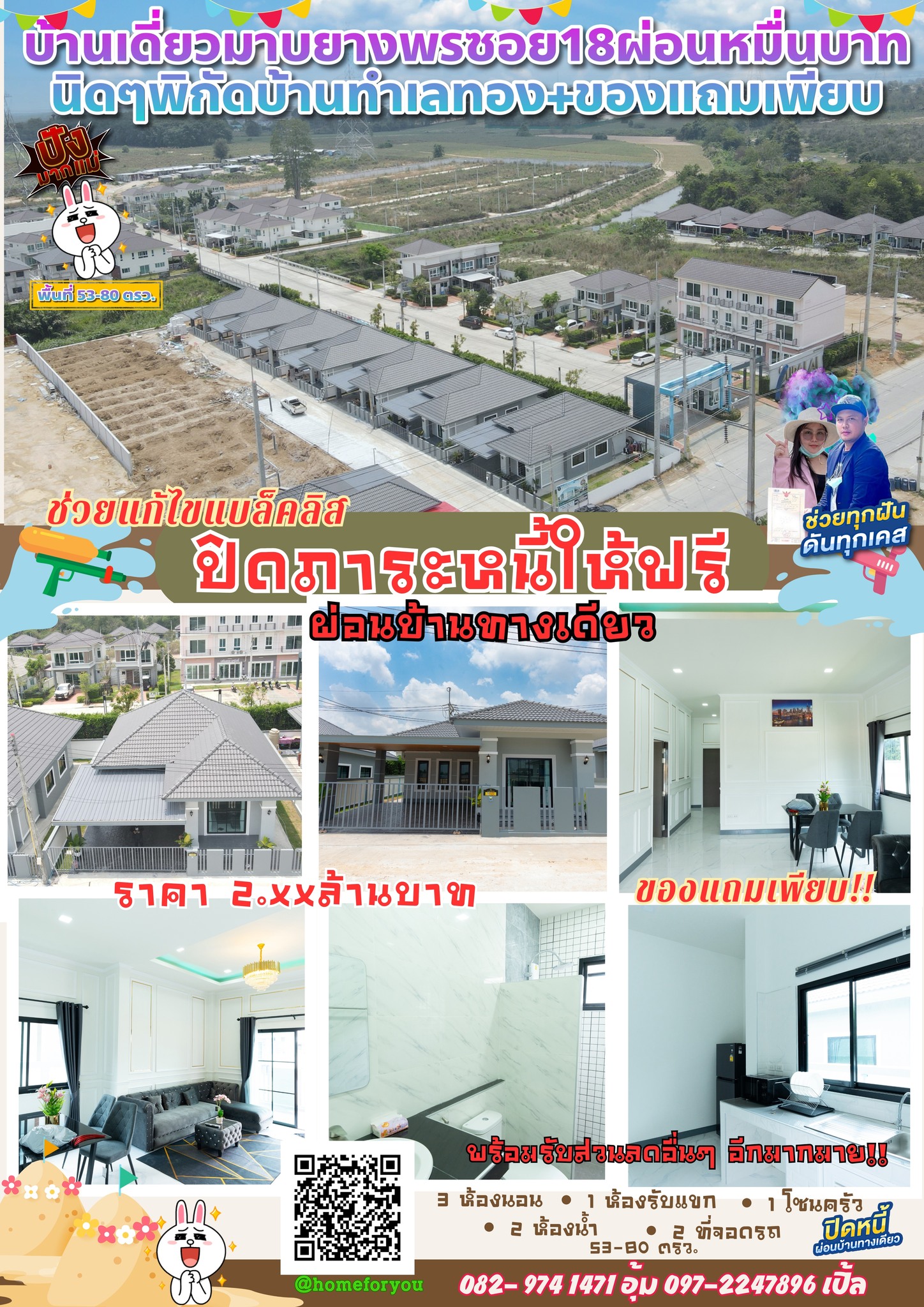 **ช่วยแก้ไขแบล็คลิสปิดภาระหนี้ผ่อนบ้านทางเดียว**บ้านเดี่ยวมาบยางพรซอย18 ผ่อนหมื่นบาทนิดๆพิกัดบ้านทำเลทอง+ของแถมเพียบ ขนาด 3 นอน 2 ห้องน้ำ 1 โถงใหญ่ 1 ครัวใหญ่ 2ที่จอดรถ พื้นที่ 53-80ตารางวา