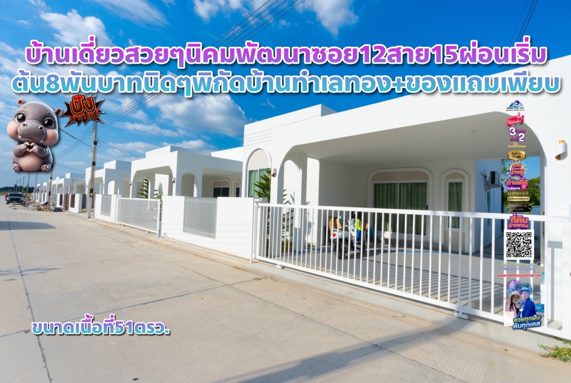บ้านเดี่ยวสวยๆนิคมพัฒนาซอย12สาย15ผ่อนเริ่มต้น8พันบาทนิดๆพิกัดบ้านทำเลทอง+ของแถมเพียบ 3ห้องนอน 2ห้องน้ำพื้นที่เริ่มต้น 51 ตรว.