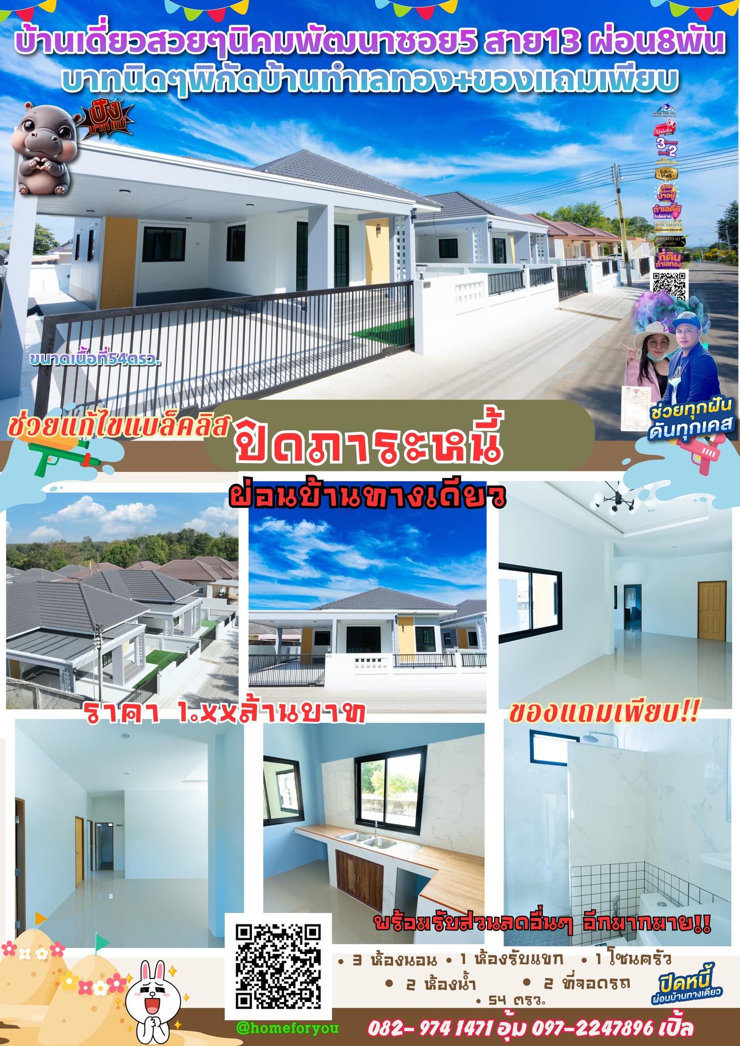 *ช่วยแก้ไขแบล๊คลิสปิดภาระหนี้ผ่อนบ้านทางเดียวบ้านเดี่ยวสวยๆนิคมพัฒนาซอย5 สาย13 ผ่อนเริ่มต้น8พันบาทนิดๆพิกัดบ้านทำเลทอง+ของแถมเพียบ พื้นที่54 ตรว. 3 ห้องนอน 2 ห้องน้ำ 2 ที่จอดรถ