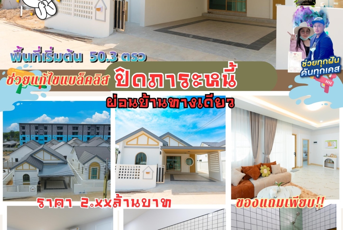 *ช่วยแก้ไขแบล็คลิสปิดภาระหนี้ผ่อนบ้านทางเดียว**บ้านเดี่ยวใกล้แยกมาบเตย หลังโรงเรียนอรวินปลวกแดงผ่อนเบาๆพิกัดบ้านทำเลทอง+ของแถมเพียบพื้นที่เริ่มต้น 50.3 ตรว. 3 นอน 2 น้ำ 2ที่จอดรถ