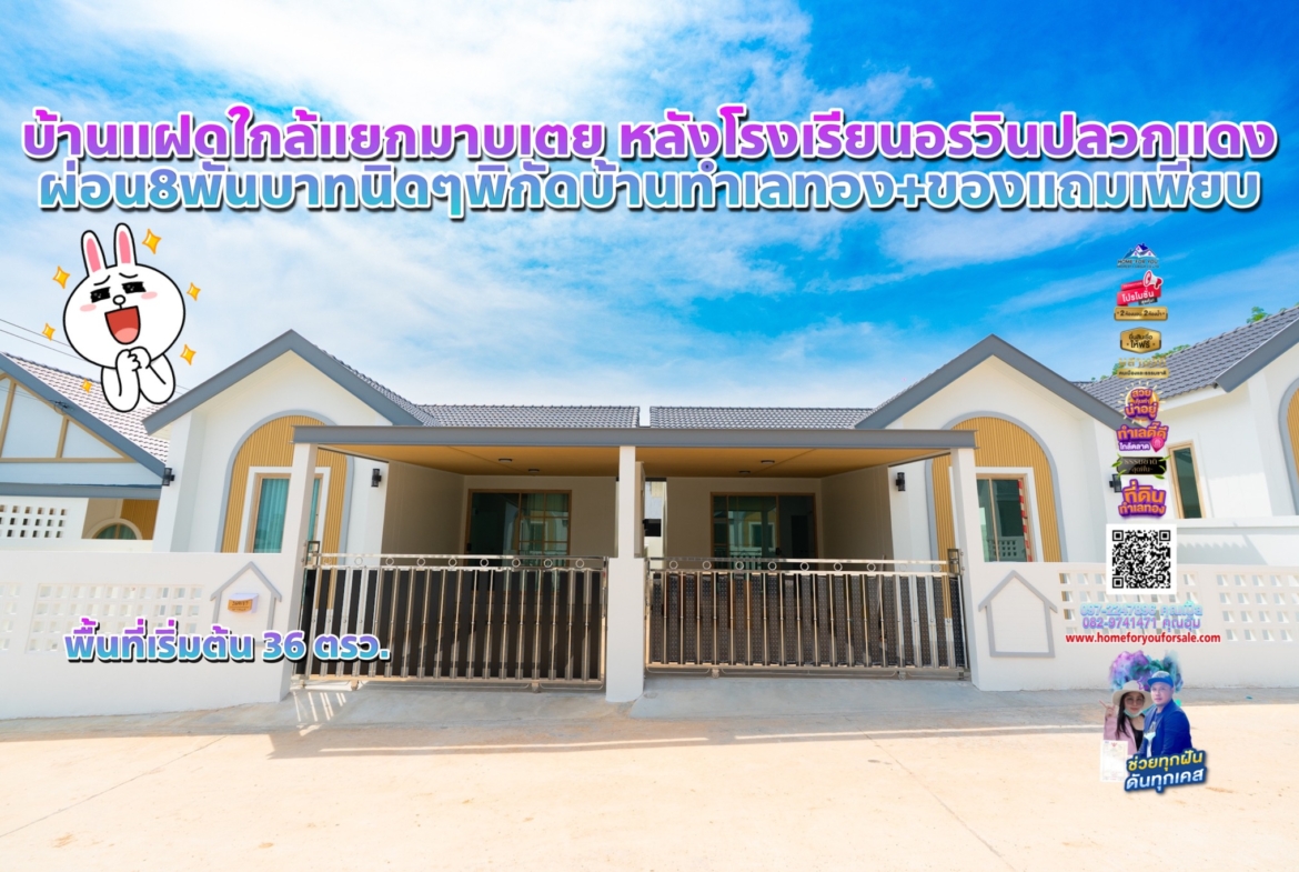 บ้านแฝดใกล้แยกมาบเตย หลังโรงเรียนอรวินปลวกแดงผ่อน8พันบาทนิดๆพิกัดบ้านทำเลทอง+ของแถมเพียบ