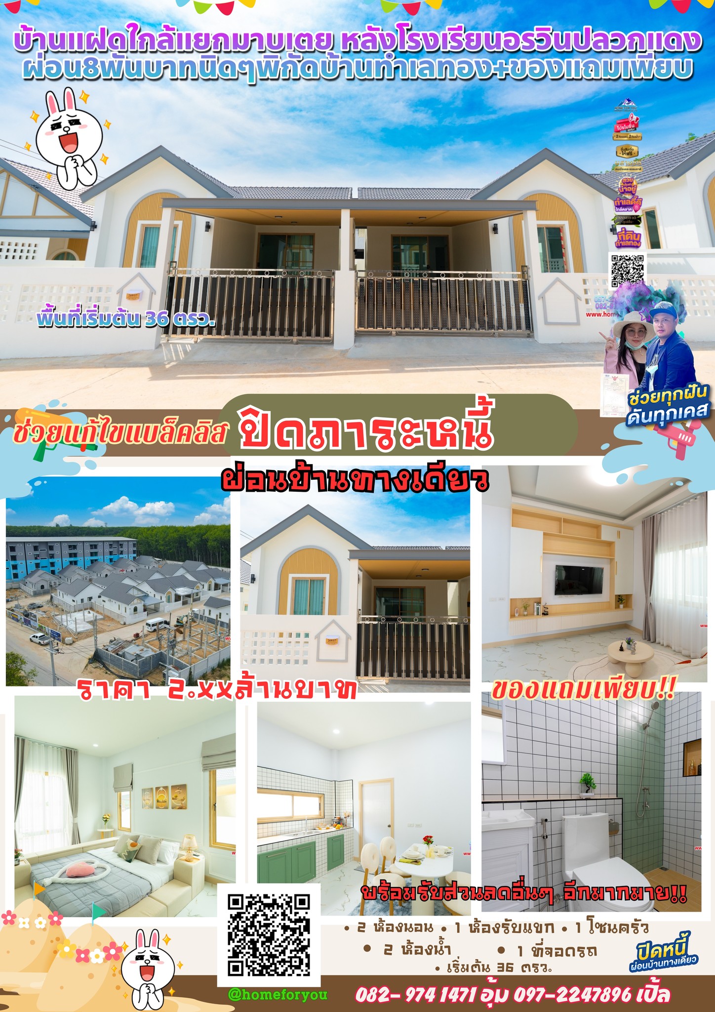 *ช่วยแก้ไขแบล็คลิสปิดภาระหนี้ผ่อนบ้านทางเดียว**บ้านแฝดใกล้แยกมาบเตย หลังโรงเรียนอรวินปลวกแดงผ่อน8พันบาทนิดๆพิกัดบ้านทำเลทอง+ของแถมเพียบพื้นที่เริ่มต้น 36 ตรว. 2 นอน 2 น้ำ 1 ที่จอดรถ